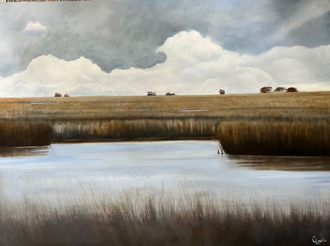 My oil-on-canvas paintings typically begin with a series of sketches and photographs -- often taken at dawn or dusk--when the light is at its most ethereal and the mood is serene. Back in my studio, I attempt to capture the sense of mystery these landscapes evoke through multiple layers of paint, beginning with an underpainting followed by several thin layers of paint, then dry brushing, and typically several layers of glaze.